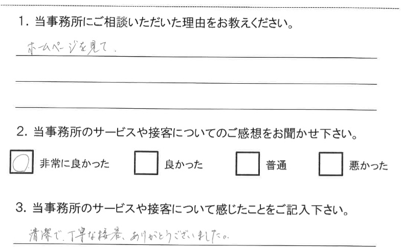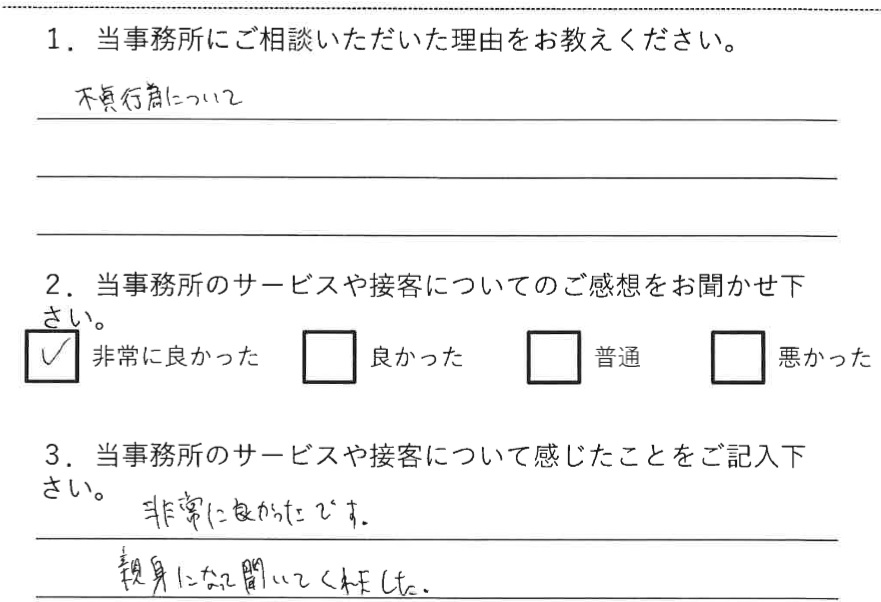 当事務所に寄せられた事件相談後のお客様の声をご紹介いたします。